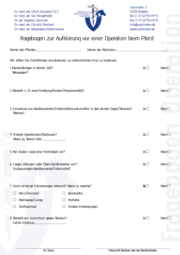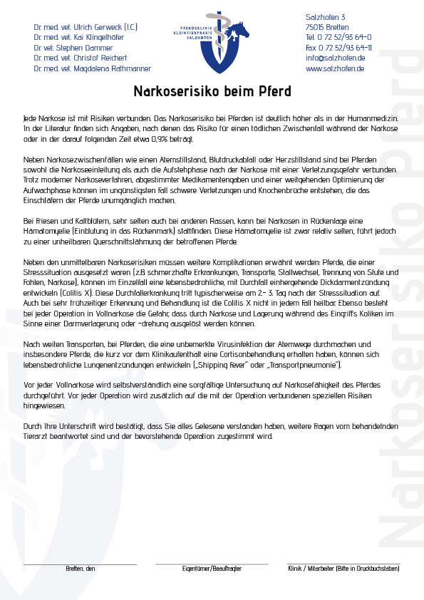 Wir bemühen uns, Wartezeiten zu minimieren und bitten Sie, sich für Behandlungen Ihres Pferdes einen Termin geben zu lassen. Unabhängig davon werden Notfälle bevorzugt behandelt.